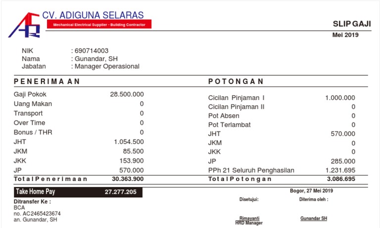 Slip Gaji Kapal Api Group Pdf Payments Payroll
