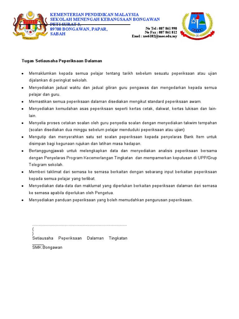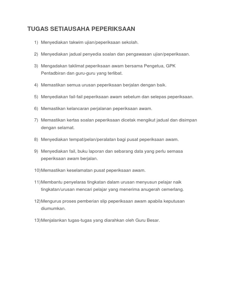 Senarai Tugas Setiausaha Peperiksaan Dalaman Sekolah Pdf