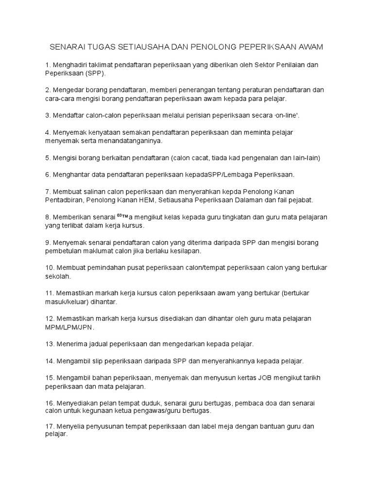 Senarai Tugas Setiausaha Dan Penolong Peperiksaan Awam Pdf